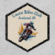 This editable patch features an illustration of a biker with the name of the biker club and location above it. The text is editable so go ahead and change the information as well as the font style, size and colour. The background colour and the edging colours can be changed, too. This can be used for biker clubs, competitions etc