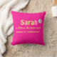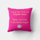 This beautiful editable throw pillow features a bright pink background with a person's name and name meaning and a white Gerbera Daisy. On the back is additional information. All text is editable so go ahead and change the information as well as the font colour, size and style. The background colour on both sides can be changed, as well. You can put whatever information you want on the back: dates of baptism, christening, confirmation, wedding, bat mitzvah, graduation etc. or you can write a personalized message in that field. This is perfect as a birth or christening gift, graduation gift etc.