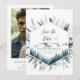 The matter paper is our sample of choice -- it's a reasonably priced, good quality, nice feeling paper stock. We were a little concerned the muted rustic blues might not reproduce all that well (usually by light colored samples), but they're just gorgeous! The white lettering is perfect in combination with the blue background, and the typography is all easy to read.