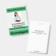 This ID badge features the name of the hospital, an illustration of the employee (which you would replace with your own photograph), the employee's location and ID number, the date the employee joined the company, hospital etc and the job title. On the back is where one would return the badge if it were found. All text is editable with the exception of the store name.The green bands behind the text can be changed to any colour, as well. The font size, style and colour can be changed, too.