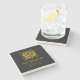 Editable QR Code & Text Template | Black & Gold Stone Coaster
