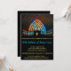This beautiful religious event invitation card features a stained glass arch with a black background. Below is a gold cross and the details of the event. This card is shown for a nun's jubilee but it can also be used for a nun's final vows, ordinations, ordination anniversaries, priests' retirements, confirmation, baptisms, First Holy Communion etc. Photo credit: Eduardo Flores, 2018.