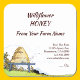 A custom sticker with room for your type of honey and farm name, weight or other info, and address info in brown letters and vintage art of a happy beehive with buzzing bees on a scenic farm landscape. Or change fonts, add your logo, change sizing, move elements and more, even save your design for later.