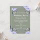 A graceful wedding invitation featuring a soft sage green background with delicate lavender and white floral accents in the corners. The elegant typography and botanical style create a romantic and timeless design perfect for modern weddings. This invitation is fully customizable, allowing you to easily edit the names, date, time, and location to match your special celebration. 💐💍