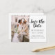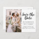 Editable Modern and Elegant Minimalist Save the Date Wedding Postcard. The save the date invitation card includes modern hand lettered script typography with a chic and simple design that you can add your customized engagement photograph picture to.