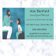 This editable business card features an illustration of a speech therapist with a child. The details of the business are on the front and there's an editable field for additional information on the back. You can change the details as well as the font size, style and colour. The background colour on both sides can be changed, too. This business card can be used for speech therapy/pathology, tutoring, child psychologist etc.