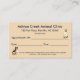 This editable business card features details of an appointment with the veterinarian with an illustration of a cat in the top right corner and a dog in the bottom left corner. There is an editable field for additional information on the back. The text is editable so go ahead and change the details as well as the font style, size and colour. The background colour on both sides can be changed, too. This versatile and editable modern business card can be used for any animal services business: vets, groomers, dog trainers etc.