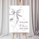 Editable White BOW with Pearls Baptism Girl Sign