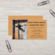 This editable business card features a photograph to the left of a window washer working in a high rise building and the business details to the right. This information is editable so go ahead and change the details as well as the font style, size and colour. On the back is a field for additional details which is editable, as well. The background colours can be changed, too. Photo credit: austin burke, 2022.