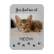 This magnet features a picture of a cat. Above it, it says, "You had me at" and below it, it says, "Meow". The text is editable so you can keep it as is or change it to whatever you'd like. The font size, style and color can be changed as well. The picture of the cat is editable so replace it with your own pet's picture. The background color can be changed as well so go ahead and make it your own!