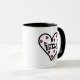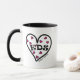 EDS Heart Mug featuring a large hear with smaller pink hearts outlined in black inside the large heart with the letters EDS inside the large heart for Ehlers-Danlos Syndrome.