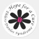 Ehlers-Danlos Syndrome Hope for a Cure Round Sticker featuring a black flower with a pink zebra striped flower center.