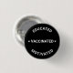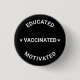 Educated, Vaccinated, Motivated black and white modern typography button pin.