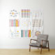 The tapestry is adorned with a large, easy-to-read clock, colorful math symbols, multiplication table, and geographical elements. The weather icons are both cute and informative, helping kids understand different weather conditions alongside their daily lessons. The design is crafted in soothing pastel colors that not only make learning fun but also add an esthetic touch to your educational space.