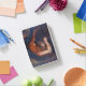 I was super excited when I got my cover in. It is attached by a magnet across the edge. I don’t think it will be very protective but it is very cute. I’m going to keep my iPad in a sleeve and use this face cover while I have it out. It folds to create a tilt for better viewing and to keep the iPad at a slight angle for typing. The colors are bright and it is fun. I’ve really enjoyed it. The personalization looks like amazing. It is the same color as the picture and is the same brightness. Well done! Very nice.