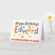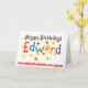 Birthday card for an 'Edward' of any age, made from a colorful handpainted paper collage.
