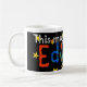 Classic white mug with a colorful inscription, 'This mug belongs to Edward' made from handpainted paper collage. (dishwasher and mocrowave safe, as are all our mugs).