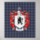 Welsh descent version of this Heraldry Crest in red, black and silver gray features the Edwards Family Coat of Arms. This design would make a unique family gift idea. Shield displays ermine background with black lion rampant. Silver wyvern (dragon) Crest above. Edwards blue and gray tartan background.