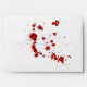 Silly and humorous faux fake deep red blood splatters and drops on crisp white background. Makes a funny gag gift, part of a halloween costume, or just to make people look twice.