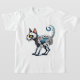 This t-shirt features an extraordinary fusion of a cat and skeleton, brought to life through a hyperdetailed colored pencil illustration. The creature boasts a round, skull-like head with hollow eyes, seamlessly blending into a cat-like body with a beautifully shaded, swirled tail. The intricate details and plain white background make this design perfect for lovers of gothic, surreal, and artistic styles. A must-have for those seeking a spooky yet elegant wardrobe piece!