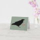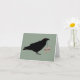 Note card with my original digitally created image of a raven or crow. The raven is ink black with blood-red eyes. He holds a chain in his mouth from which hangs a time-worn note reading "Nevermore". He stands against a grayish-green background with fine, tone-on-tone, wavy lines. The card is blank inside for you to fill with your own thoughts. A very literary way to drop someone a note for Halloween or most any other time.