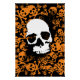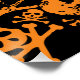 "Explore the enigmatic composition of 'Eerie Symmetry,' a captivating artwork featuring a multitude of human skulls and bones in vibrant hues. Crafted through meticulous stenciling, the arrangement boasts an array of colors, with a striking contrast between the orange backdrop and the central white skull. Dive into this intriguing piece that plays with light, shadow, and the profound symbolism of life and mortality."