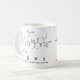 Eevi spelled out in amino acids as E E V I (Glutamic acid Glutamic acid Valine Isoleucine) on a mug for the scientist in you.