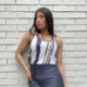 First-time purchasing one of my a design from my own shop for myself. Was thrilled with the lovely fabric (nice, soft, smooth like cotton, but it’s poly!) Fit like a dream and sits nicely in the sides and hips. Loving the smooth, nicely sewn trim at arms and neckline (see pix). Thanx for a job well done! — Di. Also thrilled that the black IS black which looks great with the snappy white fabric—the pattern is well-printed and very flattering on me. The subtle pussywillows in the design are perfect. Kudos to the print company and sewists! — Di