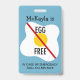 Egg free badges for your child to wear to the cafeteria at school or summer camp when eating snacks. Remind the cafeteria monitors and lunch staff that your kid is allergic to eggs with this egg allergy awareness badge. Personalize with your child's name and emergency contact information.