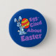 Egg-cited About Easter featuring a cartoon bunny holding a giant egg. A great button for spreading the joy of Easter. Great for a boy, girl or an adult. This funny egg pun will make everyone smile.
