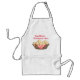 The apron is of very good quality. I used it while icing cookies. The dark colored icing washed off of the apron very well! The neck strap is sturdy and easy to resize on the adult size apron. The print was clear and well defined. I am glad I was able to personalize with name.