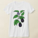 The egg plant is an interesting plant and kind of unusual. This design is a wonderful example of an egg plant with the the fruit hanging from some green leaves and also a purple flower. This egg plant design looks great on this womens t-shirt. Perfect for yourself or as a gift