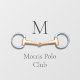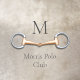 For equestrians and horse lovers, this personalized floor decal has a trompe l'oeil illustration of a copper mouth eggbutt snaffle bit between your monogram and name.