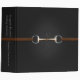 Stay organized in elegant style with this equestrian binder featuring a meticulously detailed copper mouth eggbutt snaffle bit and realistic English laced reins. Perfect for owners, riders, breeders, instructors, trainers, and horse show managers, this customizable binder includes a double monogram on the front, custom title or other label on the spine, and ample space for business details on the back. Ideal for all types of horse related documents, photos, or scrapbooking, this binder makes a sophisticated addition to any home, stable or office.