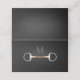 This handsome place card has yohr monogram over a trompe l'oeil illustration of a copper mouth eggbutt snaffle bit. You can customize the interior with a message or information about your event and write in the names of each guest on the back of the card. Tip: Metallic or glitter gel pens would be ideal for writing on the dark grey card.