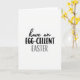 This card features a centered, three-line holiday greeting on a bright white background, keeping the focus on the words and their gentle contrast 🌷. The top line reads “have an” in a flowing black cursive style, like a note written with care to a close friend. Beneath it, “EGG-CELLENT” sits larger in all caps with thick black lettering, and the hyphen adds a light, teasing touch 🐰. The bottom line says “EASTER” in a softer medium-gray, giving the layout a calm finish that feels like a warm reply. All three lines are stacked neatly in the middle, with generous white space around them so the message feels open and inviting. The darker lines draw your eye first, while the gray word settles underneath like a quiet, affectionate sign-off. The text remains centered, with black on the first two lines and medium-gray on the last line against the plain white field.