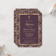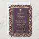 Elegant eggplant and gold floral baptism invitation featuring a gold cross inside a floral frame.