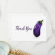 traditional watercolor artwork of a purple colored eggplant or aubergine saying thank you on a card.