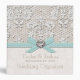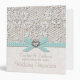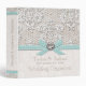 Personalize this pretty vintage lace and pearls wedding organizer binder with the name of the bride and groom and wedding date. The wedding couple is sure to love this lovely and ladylike printed eggshell blue aqua teal ribbon and heart shaped diamond and rhinestone look design. The spine of this antique lace wedding planner binder can be customized to say whatever you want. Please note, no three dimensional embellishments have been added to this binder. The artwork is printed flat and will appear as shown in the product image. Design © Chrissy H. Studios, LLC. All Rights Reserved.
