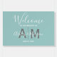 Modern fonts in white and gray. Personalize with a couple's initials / monogram and first names/ wedding date as overlay on eggshell blue background. Foam board size is 36"x24" printed on one side, but can be changed to different sizes.