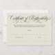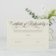 Elegant certificate of authenticity in eggshell and brown with a swirly calligraphy script.