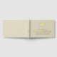 Eggshell and gold guestbook for your small business farmhouse rental with the name in gold foil beneath a hen in a greenery wreath. Farmhouse bed and breakfast guestbook in eggshell with custom gold foil text and a hen and greenery icon. Off-white and gold foil guestbook for your rental home, rental farmhouse or rustic bed and breakfast with custom gold foil text and a hen inside a wreath.