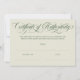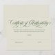 Elegant certificate of authenticity in eggshell and olive green with a swirly calligraphy script. Off-white and dark olive green certificate of authenticity with an elegant swirly script you can personalize with your name and, on the back, website, social media or webshop.