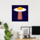 Vector cartoon illustration of a delicious sunny side up fried egg UFO with a yummy bacon slice tractor beam. Keywords: egg, bacon, breakfast, UFO, alien, sunny, side, cartoon, space, extraterrestrial, food, cute, yolk, sci-fi, science, fiction, martian, humor, meat, pork, abduction