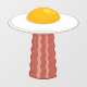 Vector cartoon illustration of a delicious sunny side up fried egg UFO with a yummy bacon slice tractor beam. Keywords: egg, bacon, breakfast, UFO, alien, sunny, side, cartoon, space, extraterrestrial, food, cute, yolk, sci-fi, science, fiction, martian, humor, meat, pork, abduction