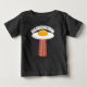 Vector cartoon illustration of a delicious sunny side up fried egg UFO with a yummy bacon slice tractor beam with EGGSTRATERRESTRIAL text. Keywords: egg, bacon, breakfast, UFO, alien, sunny, side, cartoon, space, extraterrestrial, food, cute, yolk, sci-fi, science, fiction, martian, humor, meat, pork, abduction