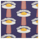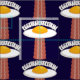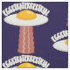 Vector cartoon illustration of a delicious sunny side up fried egg UFO with a yummy bacon slice tractor beam with EGGSTRATERRESTRIAL text. Keywords: egg, bacon, breakfast, UFO, alien, sunny, side, cartoon, space, extraterrestrial, food, cute, yolk, sci-fi, science, fiction, martian, humor, meat, pork, abduction