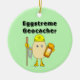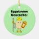 Eggstreme geocacher text with an egghead wearing a hard hat and spiked hiking boots and holding a GPS, rope and walking stick, is a funny design for geocachers at birthdays and holidays.