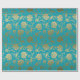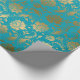 EGold & Turquoise Blue Floral Pattern Wrapping Paper