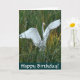 Beautiful Great Egret landing amongst reeds at a wetlands pond. Happy Birthday Card.